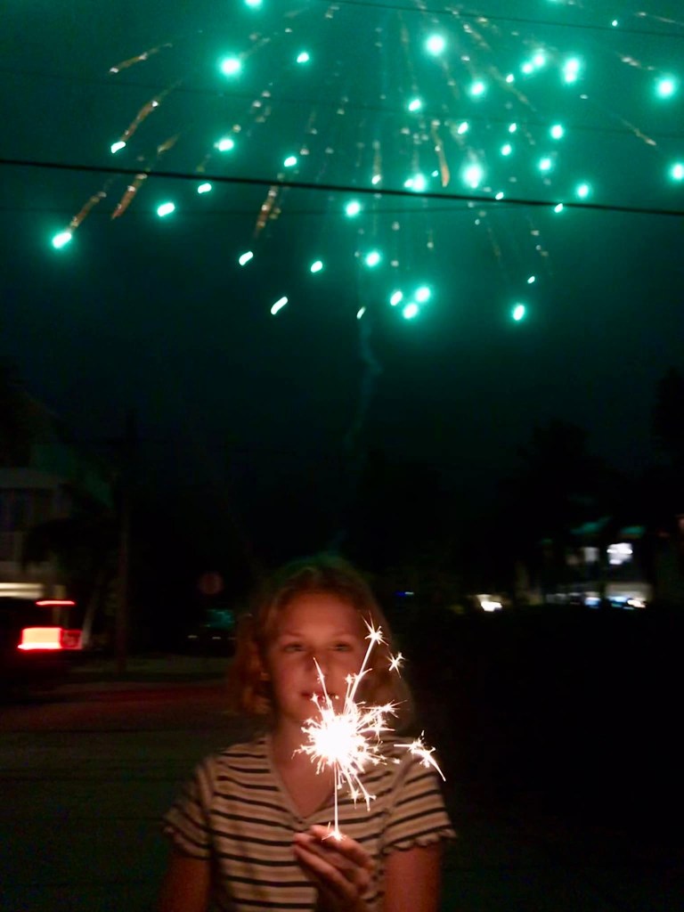 Sure, on New Year’s Eve, there are likely to be a handful of fireworks in any neighborhood. Not like this, though. Our temporary neighbors had brought a wide variety of fireworks including large industrial ones — the kind crowds oooh and ah at during municipal displays, with spectators safely distant from the explosives. Our beach neighbors seemed to think launching fireworks from the middle of a small public street was safe enough. They began shooting fireworks around 8:00. We were outside with our sparklers, and the first massive boom literally made me scream. Our next door neighbors, who had a six month old baby, came running out to report that fireworks debris had fallen into their backyard swimming pool. The neighbors closest to them called out, “That’s not appropriate!” The fireworks were beautiful, but LOUD. And dangerous!
